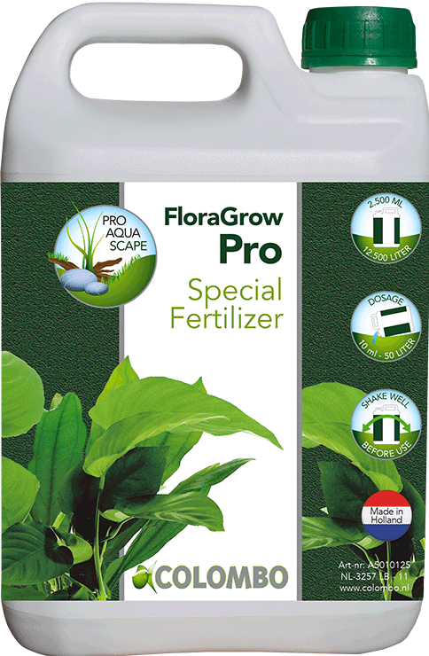 Liquid foliar feed for heavily planted ” scapers” aquariums with relatively few fish. FloraGrow Pro is special liquid plant food for heavily planted aquaria, Flora Grow Pro was developed together with aquarium plant nursery Aquafleur and contains all important nutrients in a balanced composition plus nitrates and phosphates for brilliant plant growth.