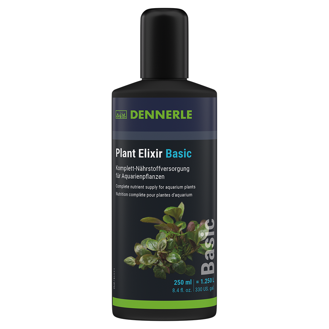 Dennerle Plant Elixir Basic offers a universal nutrient supply for all planted aquariums. Figuratively speaking, it is the all-rounder among aquarium plant fertilizers. Plant Elixir Basic is ideal for all normal, planted community aquariums, especially beginner aquariums and children's aquariums. Typical for these aquariums is a planting of about 50% of the ground area with various plant species, including some fast-growing stem plants.