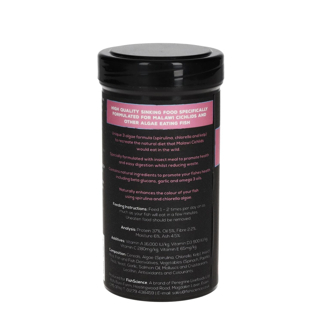 High quality sinking food specifically formulated for Malawi cichlids and other algae eating fish. Unique 3 algae formula (Spirulina, Chlorella and Kelp) to recreate the natural diet that Malawi Cichlids would eat in the wild.