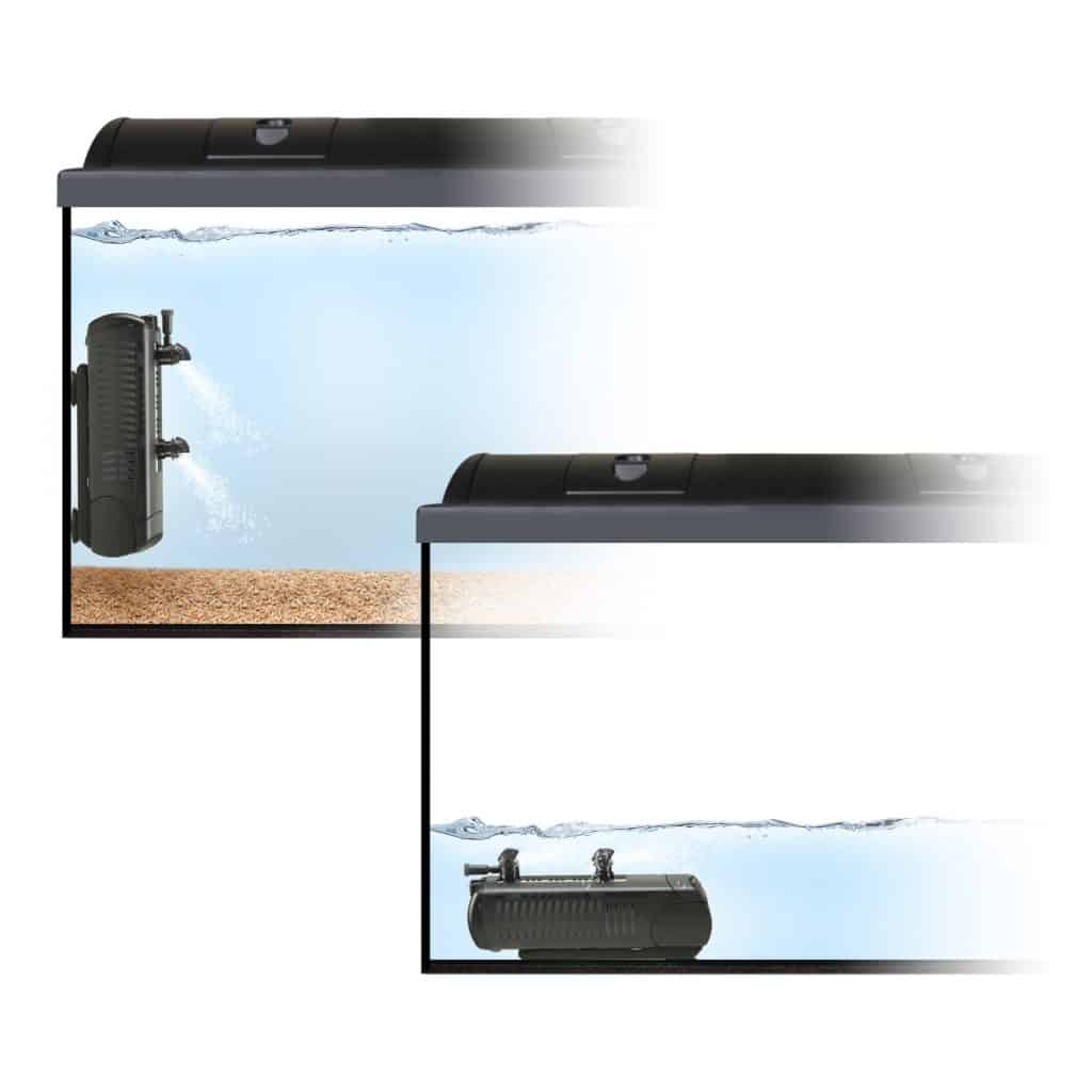 - Position horizontally for shallow tanks, larger tanks with low water levels, or to create a decorative waterfall feature