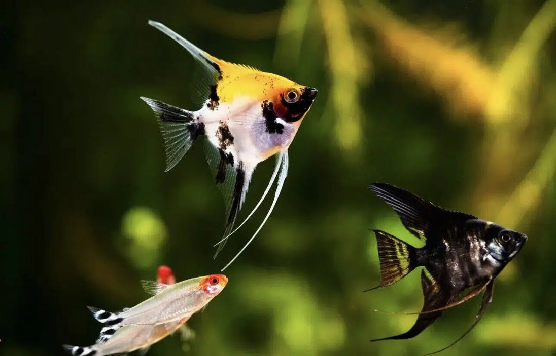 Angelfish are known for their graceful swimming and elegant appearance. They are generally peaceful but can become territorial during breeding or if their territory is invaded. They are compatible with other peaceful fish species, but care should be taken to avoid aggressive tank mates.
