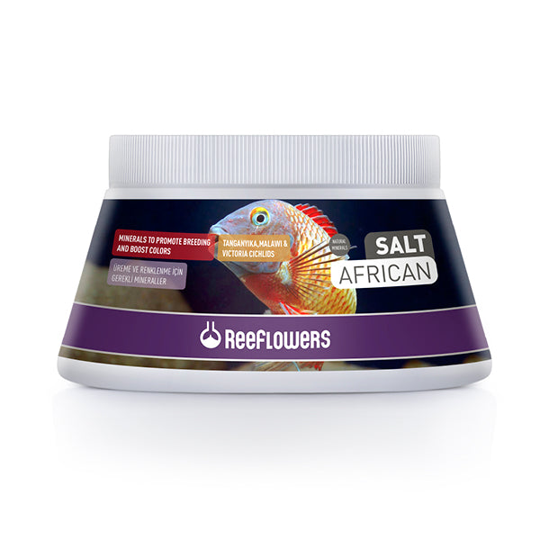 ReeFlowers Salt African helps provide the elements that fish need for healthy development and vivid colors. It helps promote natural habitat conditions, supports skeleton development, and speeds up reproductive functions. It can be used for all African Cichlid species.