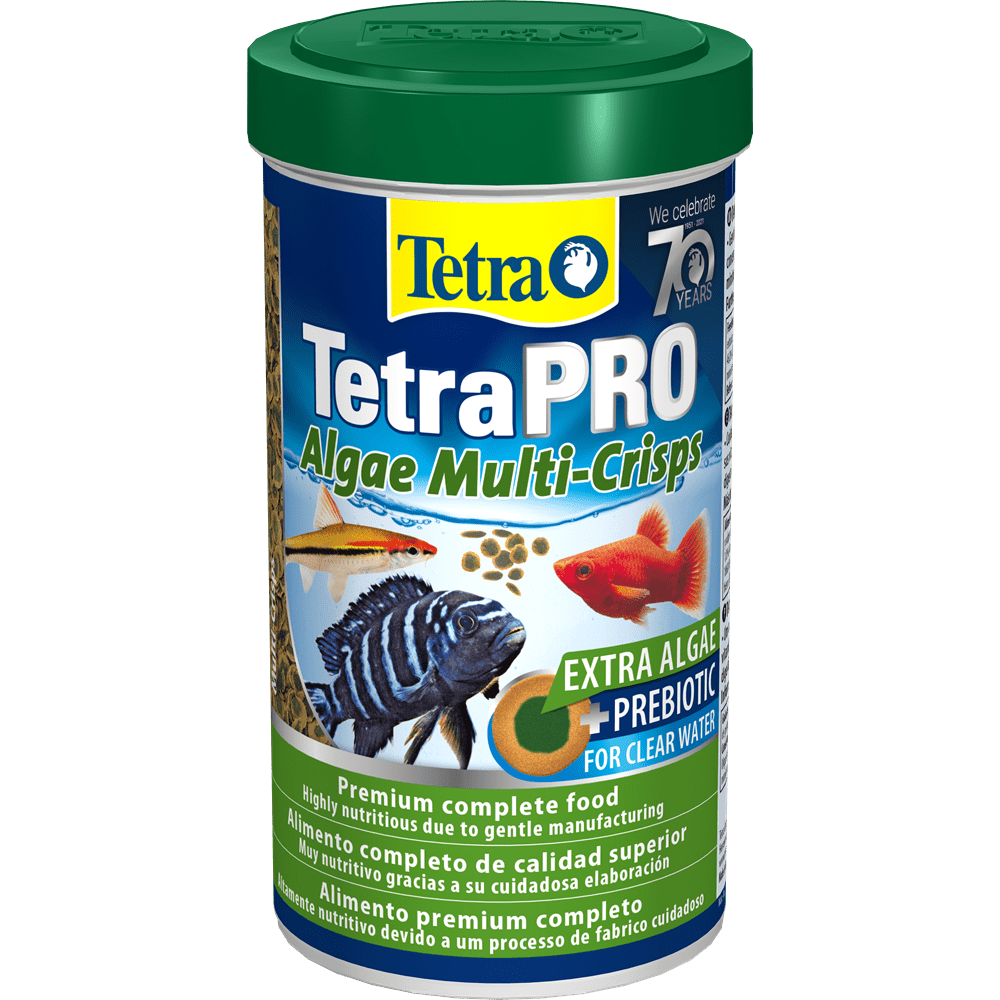 Tetra Pro Algae is a balanced premium fish food with a concentrated vegetable crisp for all tropical fish The 18g tub of highly nutritious fish food also contains Spirulina for good health and increased resistance to infectious disease.