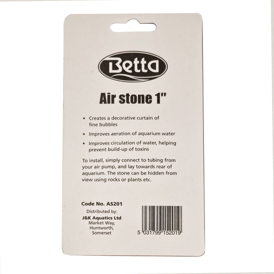 Betta Air Stones create a wall of air bubbles to decorate, aerate, and improve circulation in your aquarium. To install an air stone, connect to standard (4/6mm) silicone or plastic airline from the air pump and...Regular price £1.99
