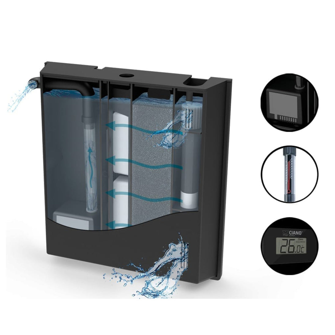 The Ciano Aqua 60's are a stylish and durable aquariums for first time and experienced fish keepers. These are similar to the Ciano Aquarium 60 models, except they have a much larger filter included. Also contained is an aquarium heater, LED lighting and an instructions guide. Available in black and white colour finishes. Dimensions (LxWxH): 600mm x 300mm x 335mm.