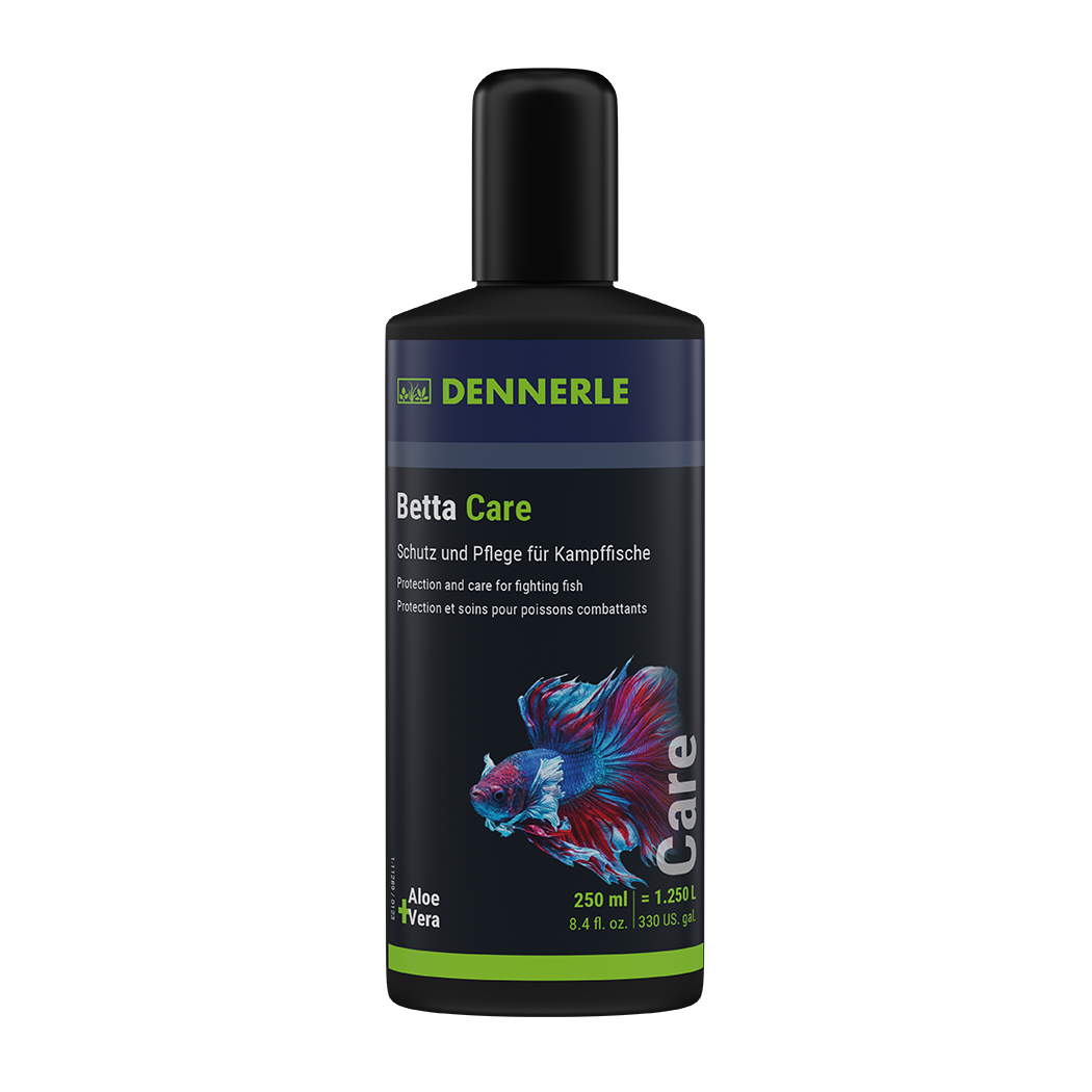 Betta Care is an aquatic care product for effective protection and comprehensive care especially for bettas (Betta splendens). Natural humic and fulvic acids, in combination with valuable sea almond tree extract and natural aloe vera, protect and care for the sensitive mucous membranes, gills and fins. Carefully selected medicinal herb extracts stimulate the immune system. A vitamin B complex reduces stress. The proven active ingredient dexpanthenol promotes the regeneration of skin and fin damage. The life element iodine supports healthy thyroid function. For colourful, vital and active betta fish.