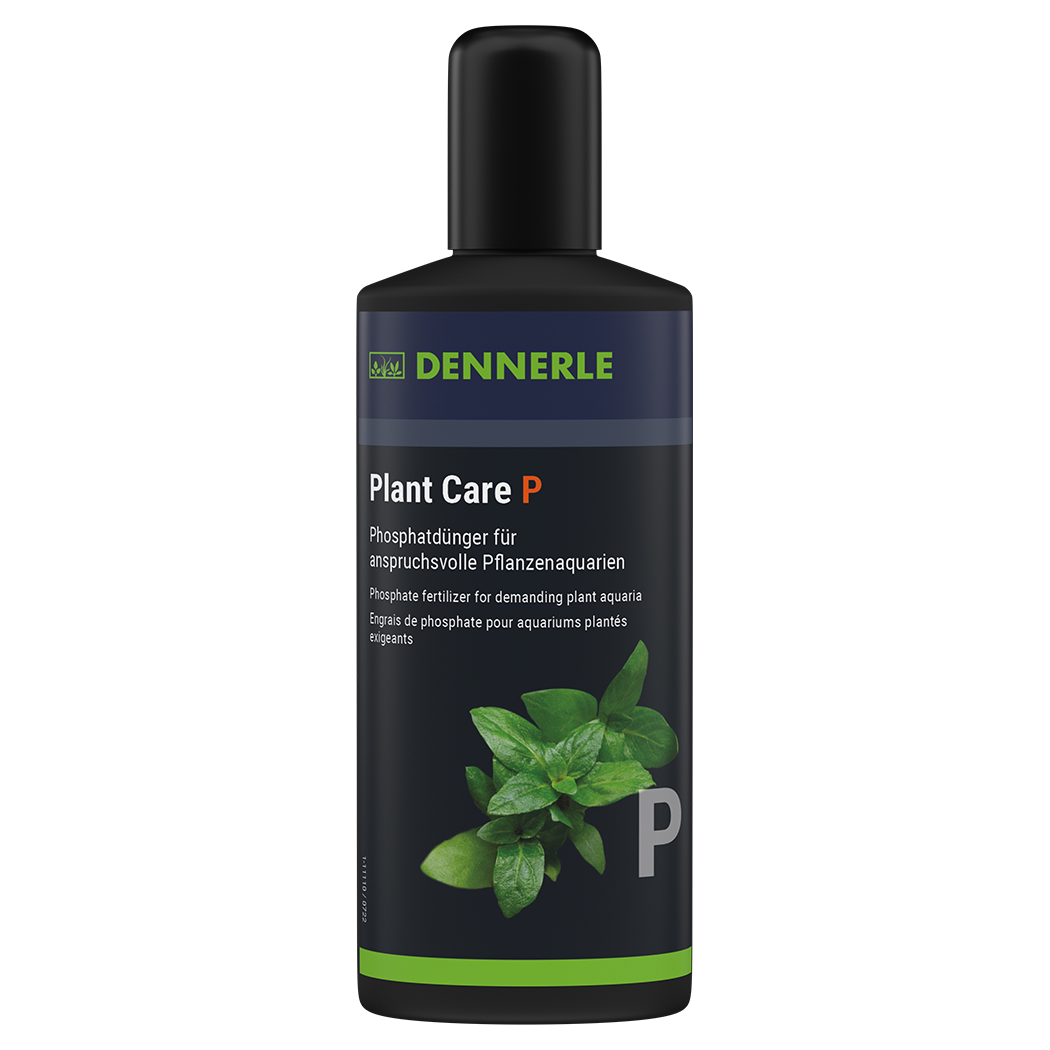 It is therefore very useful for demanding plant aquariums to keep an eye on the phosphate content and to supplement it if necessary. Each aquarium has a specific nutrient consumption depending on the amount of plants, plant species, animal population, feeding, water change and growing conditions (amount of light, lighting time, CO2-Addition, filter technology, etc.). The amount of fertiliser required should therefore be determined individually for each aquarium. If the aquarium needs all 3 macronutrients N, P and K, the use of Dennerle Plant Care NPK is recommended. The nutrient ratios were chosen in such a way that all macronutrients are absorbed by the plants in equal proportions. Even with longer-term, regular use, there can be no deficits or detrimental accumulations of individual nutrients. Especially with macronutrients, the biological balance is of particular importance, i.e. the nutrients should always be in a certain proportion to each other. Nutrient imbalances must be avoided, as they usually lead to algae problems. Under certain circumstances, the aquarium may have a specific need for phosphate. There is also tap water that contains enough nitrogen and potassium, but too little phosphate. In these cases, Dennerle Plant Care P should be used to supply the plants with phosphate in a targeted manner. We recommend measuring the phosphate content regularly and dosing Plant Care P accordingly. Phosphate can be measured accurately and reliably with aquarium tests. Phosphate is absorbed very quickly by the plants and can be stored well. In aquariums in which there has been a phosphate deficiency for a long time, this means that the added phosphate initially "disappears" quickly from the water. After about 7 – 14 days of regular addition, when the plants have refilled their phosphate stores, the measurable phosphate content in the aquarium water then rises again. Phosphate is a real growth engine, both for aquatic plants and algae. Phosphate can therefore be used to control both plant growth and algae growth. For example, it has proven to be effective to use phosphate as a shock fertiliser with 0.1 – 0.2 mg/L. You only fertilize again when the phosphate content has been at zero for a few days. Aquatic plants can store phosphate better than algae. This method can be used to make life difficult for the unwanted algae. While the plants supply themselves from their internal phosphate stores in "phosphate-poor times" and continue to grow, the algae "starve" and are thus significantly slowed down in their growth. A macronutrient fertiliser must always be used in combination with a micronutrient fertiliser (complete iron fertiliser). For a complete supply of nutrients and the best possible plant growth, we recommend combining it with Plant Care Pro. For magnificent plant growth and healthy fish and shrimp, we recommend a partial water change of 25% to 50% per week. This removes waste and inhibitors and prevents nutrient imbalances.