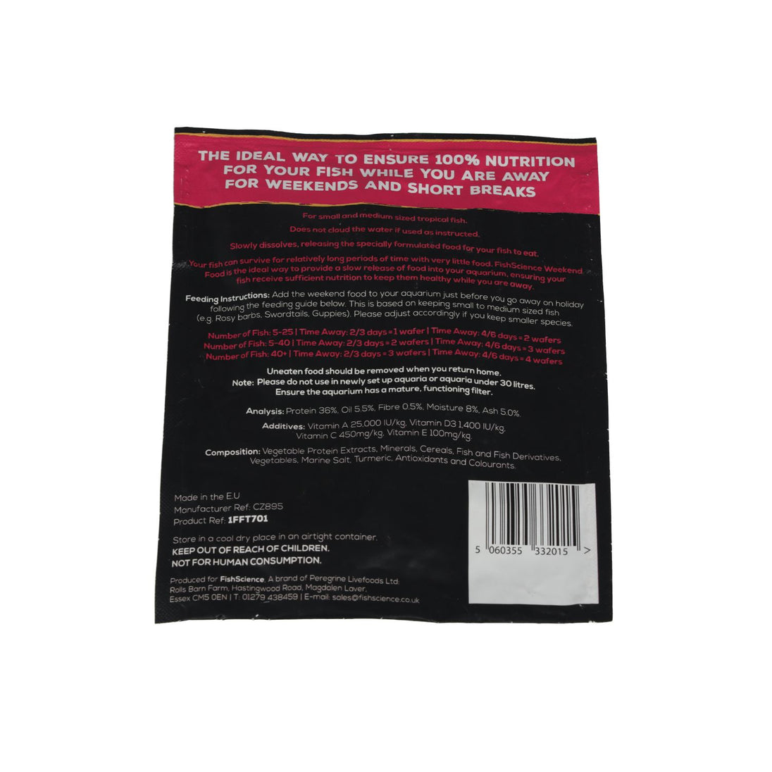 Your fish can survive for relatively long periods of time with very little food. FishScience Weekend Food is the ideal way to provide a slow release of food into your aquarium, ensuring your fish receive sufficient nutrition to keep them healthy while you are away.