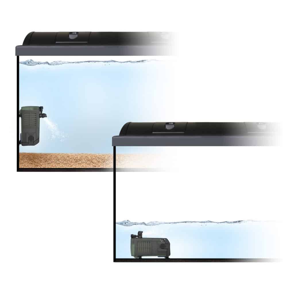 - Position horizontally for shallow tanks, larger tanks with low water levels, or to create a decorative waterfall feature