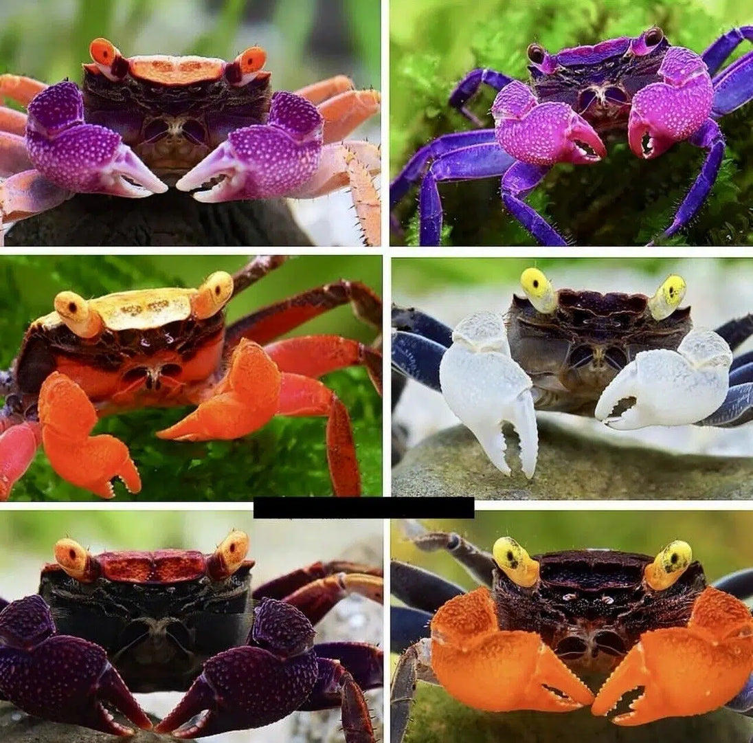 Assorted Colour Vampire Crabs are known for their active and curious nature. They are excellent climbers and can often be seen exploring their surroundings. These crabs are generally peaceful but may display territorial behavior towards other crabs or small fish.