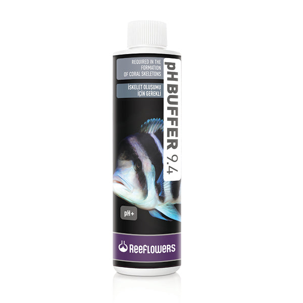 ReeFlowers pH Buffer 9.4 raises the pH & kH values of aquariums and helps to stabilize levels when used regularly creating a more natural environment for fish and assisting skeletal development. 10 ml of pH Buffer 9.4 should be added for every 100 liters of water on a daily basis until the pH level is optimal for your fish’s natural environment. Once the required pH level has been reached, it is recommended that tests should be performed at regular intervals and the pH value should be held stable by making additions when necessary. No more than twice of the recommended amount for your aquarium should be added.