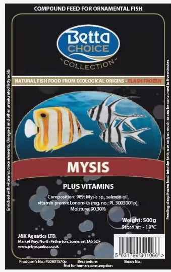 Betta Choice frozen Mysis (Mysis shrimp) boosts the vitality and health of tropical fish, marine fish, corals, and invertebrates. The Mysis are enriched with vitamins, trace elements, Omega-3 and other unsaturated fatty acids. Can be used...Regular price From £2.50 -