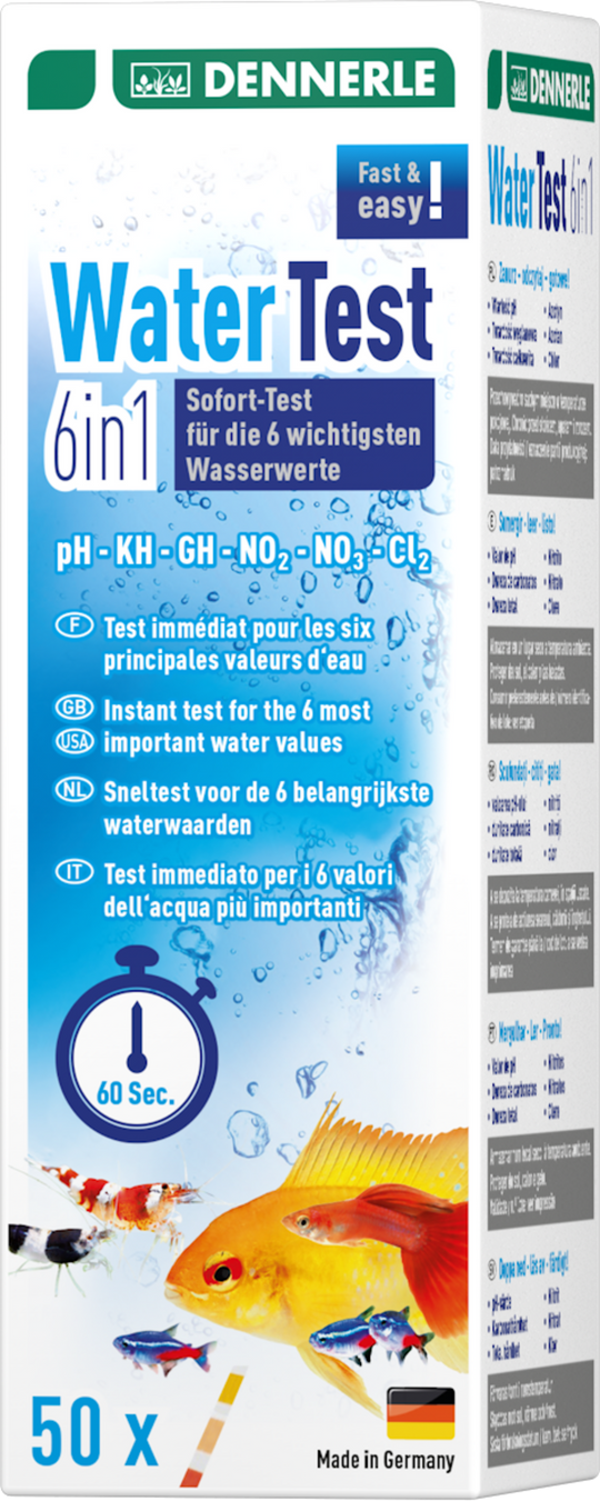 Vendor: Fishcave Aquatics Dennerle Water Test 6 in 1 Dennerle Watertest 6in1 is a strip test for quickly determining the 6 most important water values in a freshwater aquarium. With the Watertest 6in1 you measure the six most important water parameters in your aquarium in...Regular price £12.29